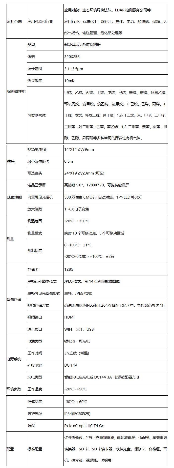 3.使用灵活:可以VOCs气体成像检漏, 又可以红外测温;体积小、重量不超过2.8kg。